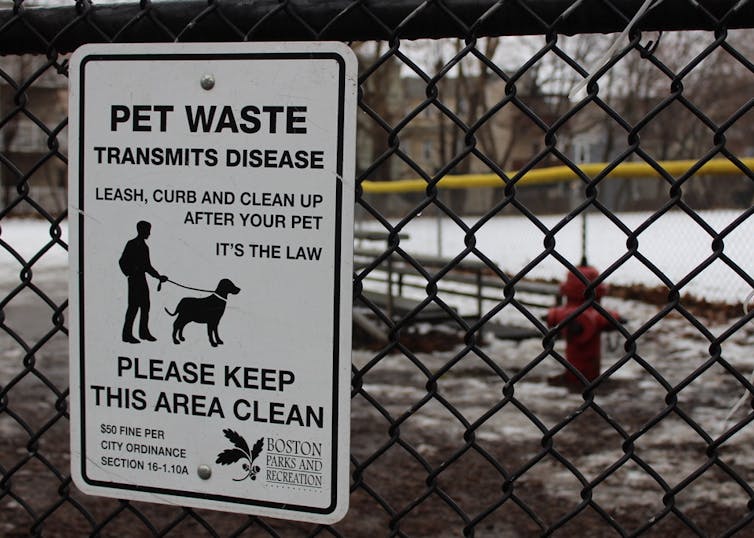 It’s not just gross. Beyond the mess and the smell, it’s potentially infectious. That’s why signs reminding pet owners to “curb your dog” and scoop their poop have been joined in some places by posted warnings that pet waste can spread disease.